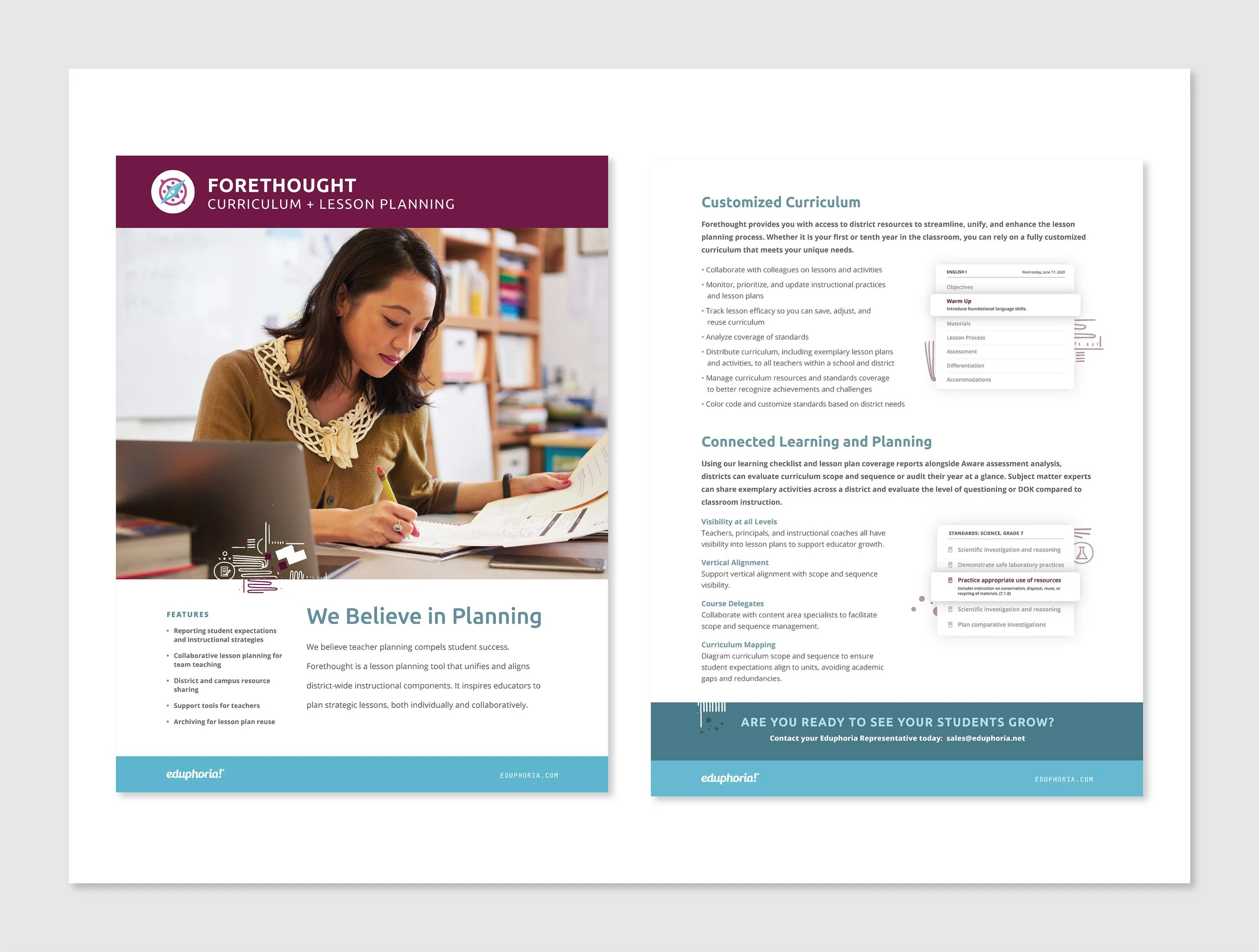 We overhauled Eduphoria’s digital media, sales and marketing collateral, and corporate presentation material. We collaborated with the leads of the engineering, sales, and marketing teams to develop product documentation, white papers, RFP templates, and animated video content for LinkedIn, web, and live events.